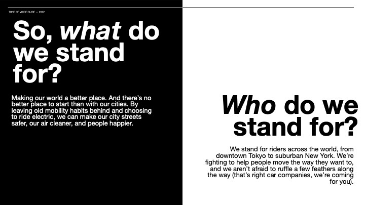BRIEF - Create a tone of voice guide for VanMoof. From scratch.